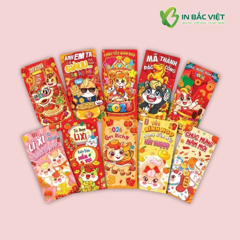 Bài viết trên đây đã giúp bạn khám phá 30+ mẫu bao lì xì 12 con giáp đẹp, nổi bật nhất trong dịp Tết 2026. Nếu bạn yêu thích mẫu nào thì hãy liên hệ với In Bắc Việt để được tư vấn, thiết kế, in ấn trọn gói. Càng về Tết nhu cầu in ấn lì xì càng tăng, xưởng đã chạy hết công suất nhưng nhiều khi vẫn quá tải. Vì vậy bạn nên chủ động thời gian, liên hệ sớm để đặt in ngay từ hôm nay nhé!