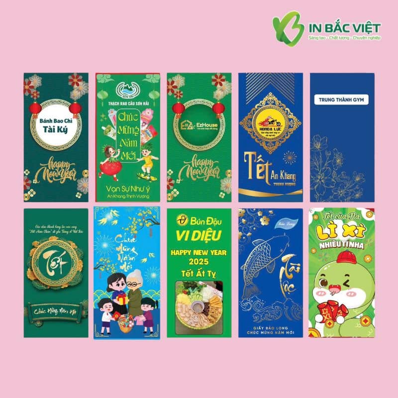 Bạn không cần mất thời gian lướt thông tin từ Fanpage này sang Group khác để tìm kiếm địa chỉ in bao lì xì màu xanh. Chỉ cần liên hệ In Bắc Việt, chúng tôi đem đến dịch vụ thiết kế lì xì, in ấn, gia công, giao hàng trên toàn quốc. Đảm bảo quy trình in ấn chuyên nghiệp, khép kín, mang đến cho khách hàng sự hài lòng về sản phẩm và dịch vụ in ấn.
