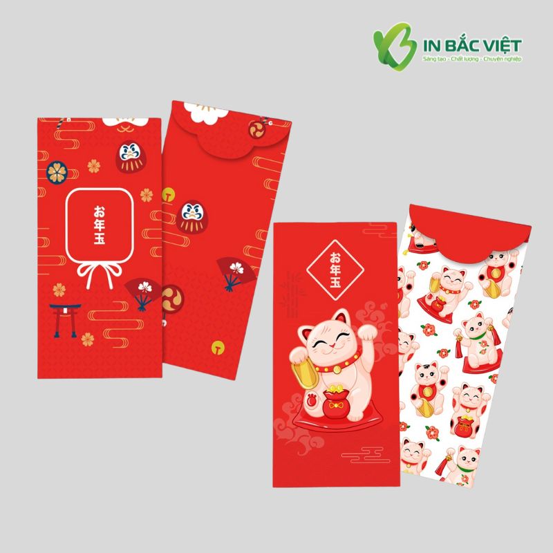 Với thiết kế tinh tế, mang nhiều ý nghĩa tốt đẹp, mẫu bao lì xì Nhật Bản đang trở thành lựa chọn của nhiều doanh nghiệp, cá nhân. Xưởng In Bắc Việt hiểu rằng, bao lì xì Tết không chỉ là món quà may mắn đầu năm mà còn là cách để thể hiện sự trân trọng, gu thẩm mỹ của người tặng. Đến với chúng tôi, khách hàng sẽ được tư vấn chi tiết từ khâu thiết kế, chọn giấy, kích thước, công nghệ in, kỹ thuật gia công… Đảm bảo lì xì nhận về đẹp, đúng mẫu, đúng màu, đúng mong muốn của khách hàng. Liên hệ ngay để nhận ưu đãi in lì xì Tết tại In Bắc Việt (số lượng có hạn):