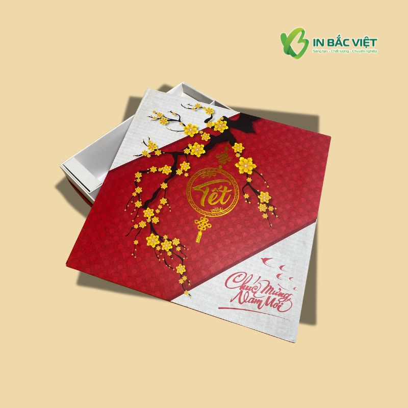 In Bắc Việt là đơn vị thiết kế và in ấn các ấn phẩm truyền thông, quảng cáo, bán hàng. Trong đó, chúng tôi đã triển khai hàng loạt dự án in ấn hộp quà tặng Tết. Hộp quà Tết rất đa dạng về mẫu mã, kiểu dáng, kích thước. Chúng được phân theo từng nhóm sản phẩm như bánh kẹo, đồ uống, hạt dinh dưỡng, thực phẩm…