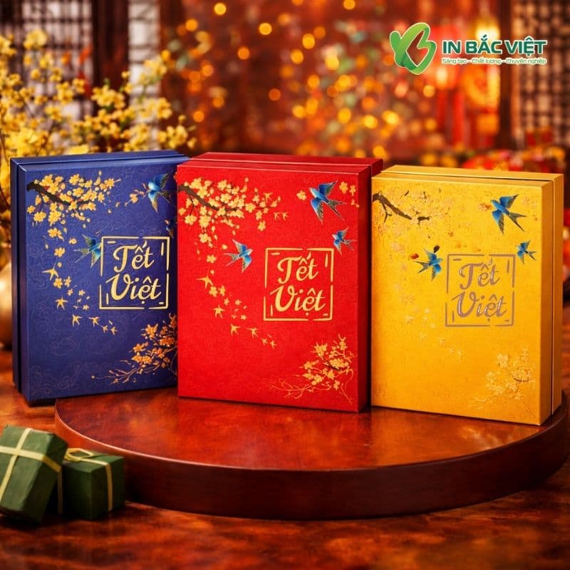 📌 Để nhận báo giá in hộp quà Tết màu đỏ, xanh, vàng theo yêu cầu cụ thể. Khách hàng vui lòng liên hệ trực tiếp với In Bắc Việt: